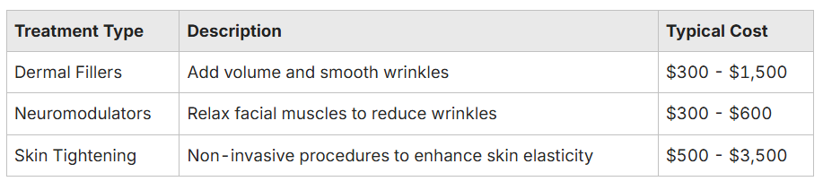 Different injectable treatments and skin tightening options provide a comprehensive approach to facial rejuvenation, allowing individuals to achieve their desired aesthetic goals effectively.