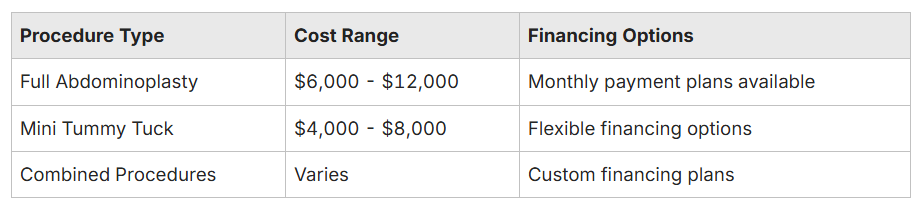 The average cost of a tummy tuck in Middletown, NY, typically ranges from $6,000 to $12,000. Financing options at SY Aesthetics is available to help manage the cost, allowing patients to choose a payment plan that fits their budget.